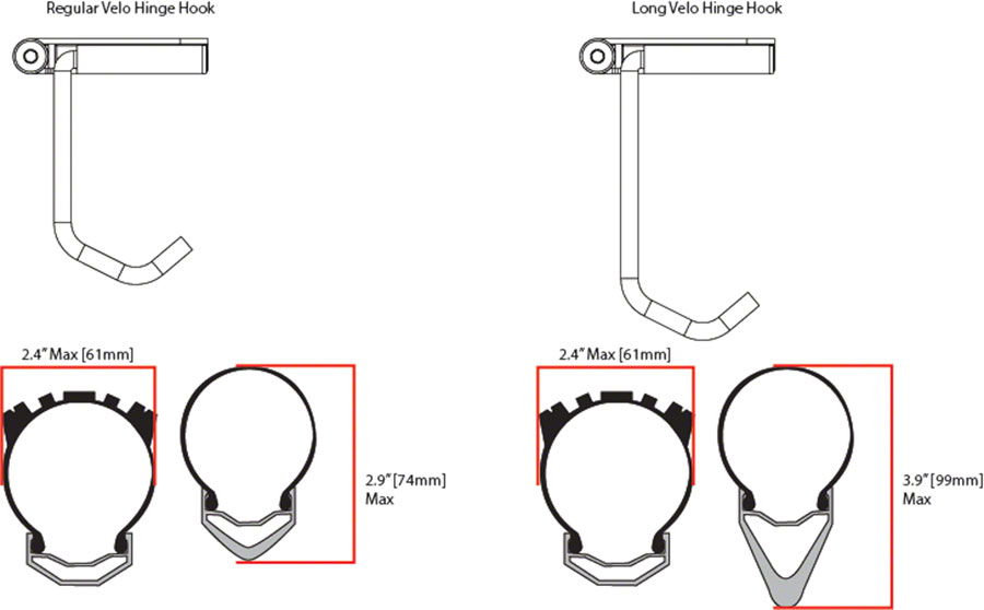 Feedback Sports Velo Hinge Long Wheel Hook - Up to 3" Tire, Black